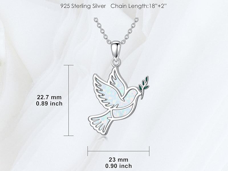 [White Opal Dove Pendant Size]: White Opal Dove Pendant Size: 22.7*23 mm (0.89*0.90 inch), Sterling Silver Chain:18+2 inch Extender Chain. Adjustable chain can fit a variety of looks and occasions.