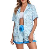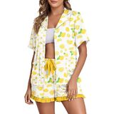 Charming Design: Adorned with cute prints and ruffled trim, the short-sleeve & shorts style balances sweetness and relaxation, decorated with two side pockets, flattering most body types with its loose, easy fit.