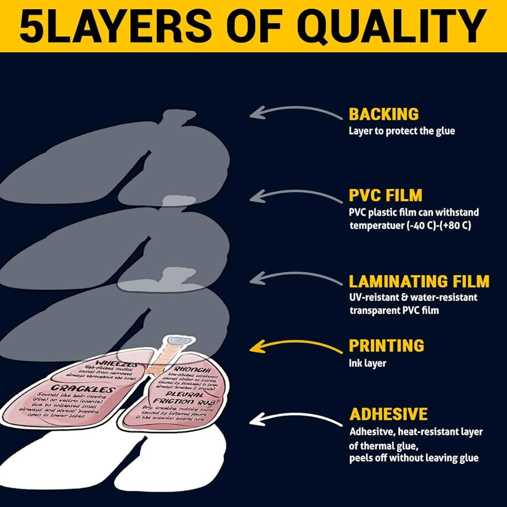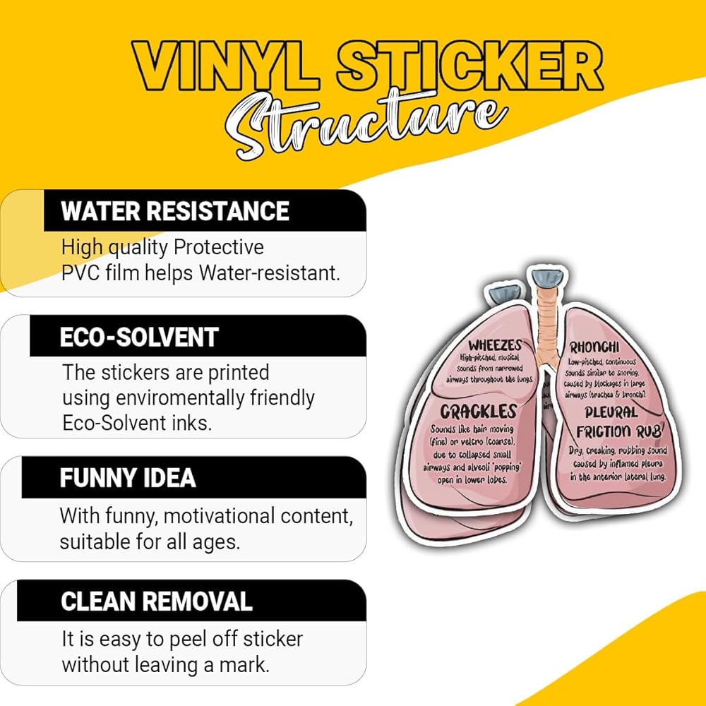 (3Pcs-3in) Lung Sounds Hand Drawn Stickers, Medical Anatomy Vinyl Decals Gifts for Respiratory Care Students, Nurses, Doctors, Healthcare Workers, for Laptop, Water Bottle, Journals, Clipboards