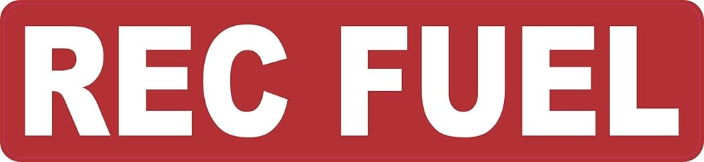 9 inches by 2 inches (228.6 mm x 50.8 mm) Rec Fuel Vinyl Sticker