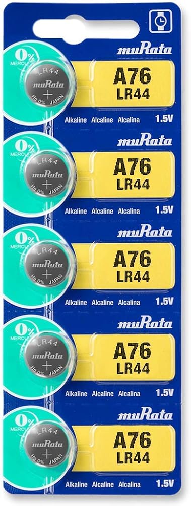 - Murata LR44 1.5V Alkaline Manganese Coin Cell, 120mAh