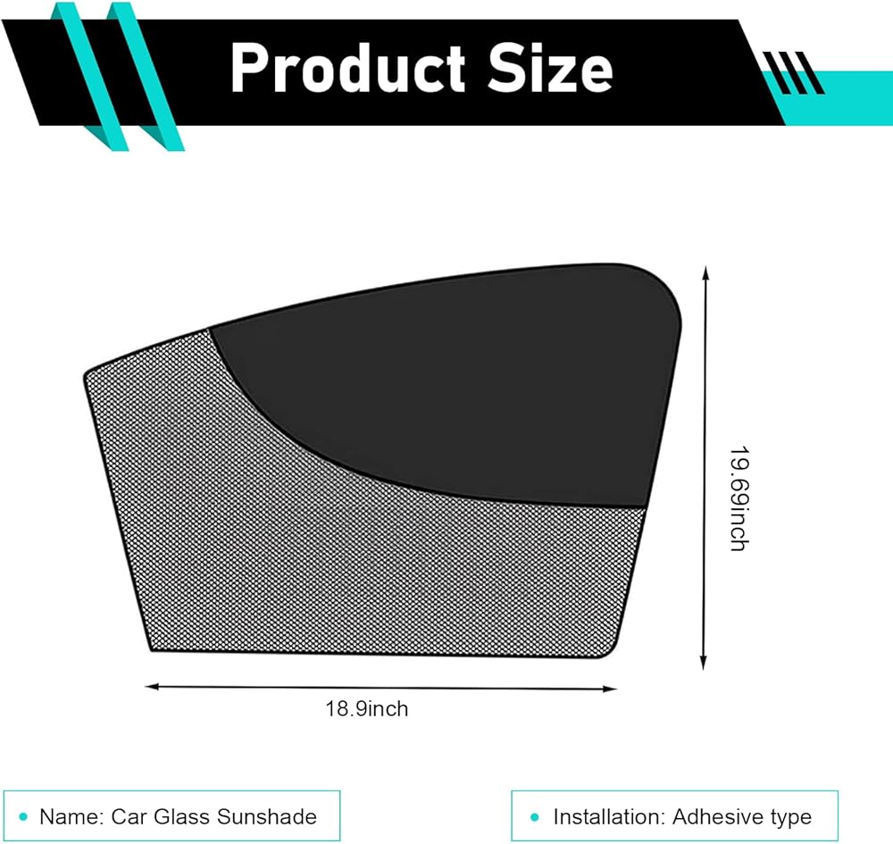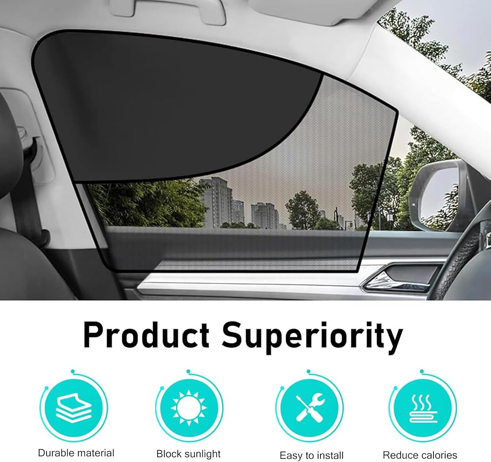 Material: This car window shade is crafted from a premium combination of black cloth and breathable mesh, engineered for long-lasting daily use. The high-density black cloth boosts heat insulation and sun blocking performance, while the fine mesh ensures optimal air circulation inside the car.