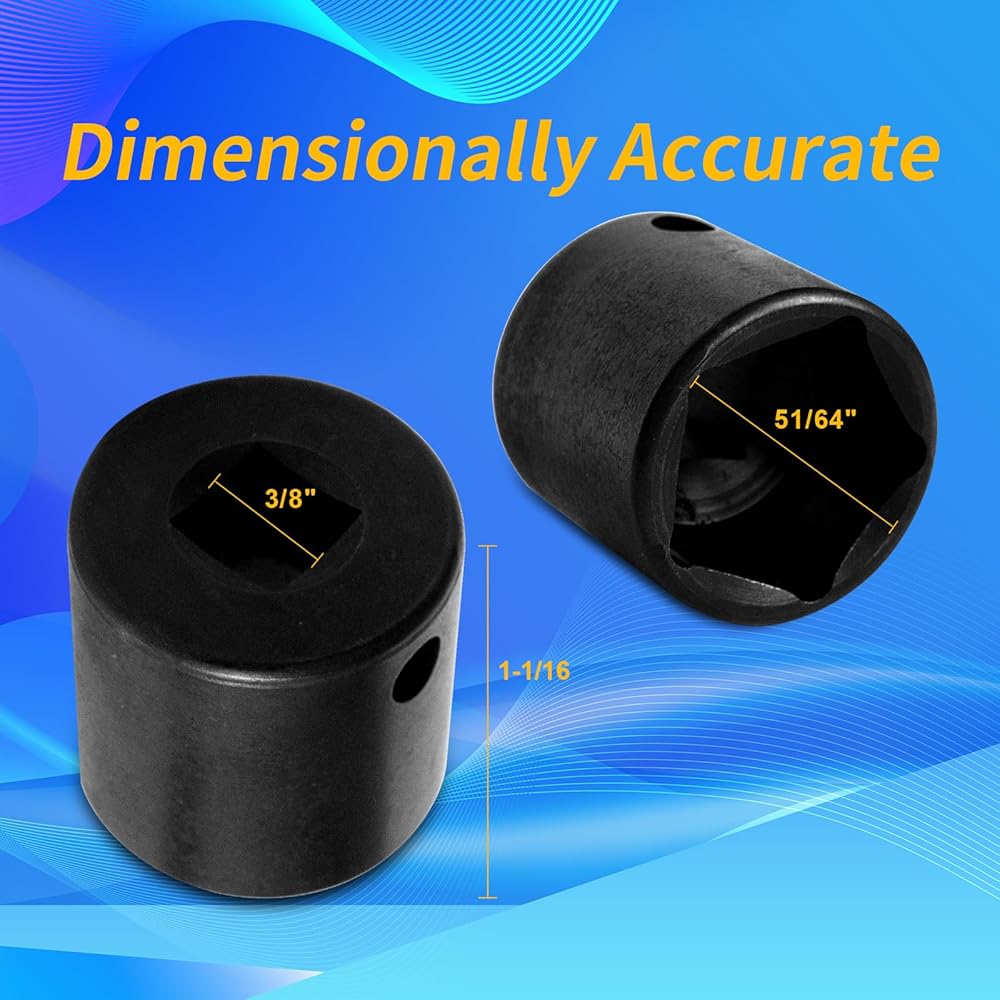 - Drive Size: 3/8", Overall Length: 1-1/16".