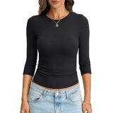 Flattering Slim-Fit Design & 3/4 Sleeve Elegance: Designed with a contemporary slim fit that gently contours to your curves, thanks to the stretchy fabric. The universally flattering 3/4 length sleeve is a timeless detail that hits just below the elbow, offering a chic look that's ideal for layering.