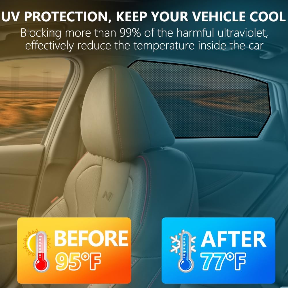 Vehicle Specific: BWEN sunshade is specially designed for Hyundai Elantra 2021-2025, perfectly fits the side window size, protects your car from sunlight and heat, and keeps the interior of the car cool.