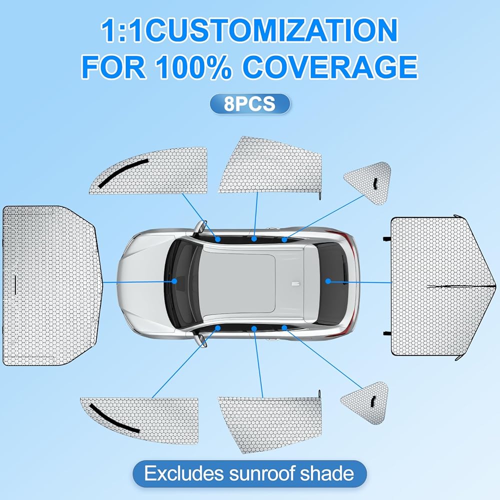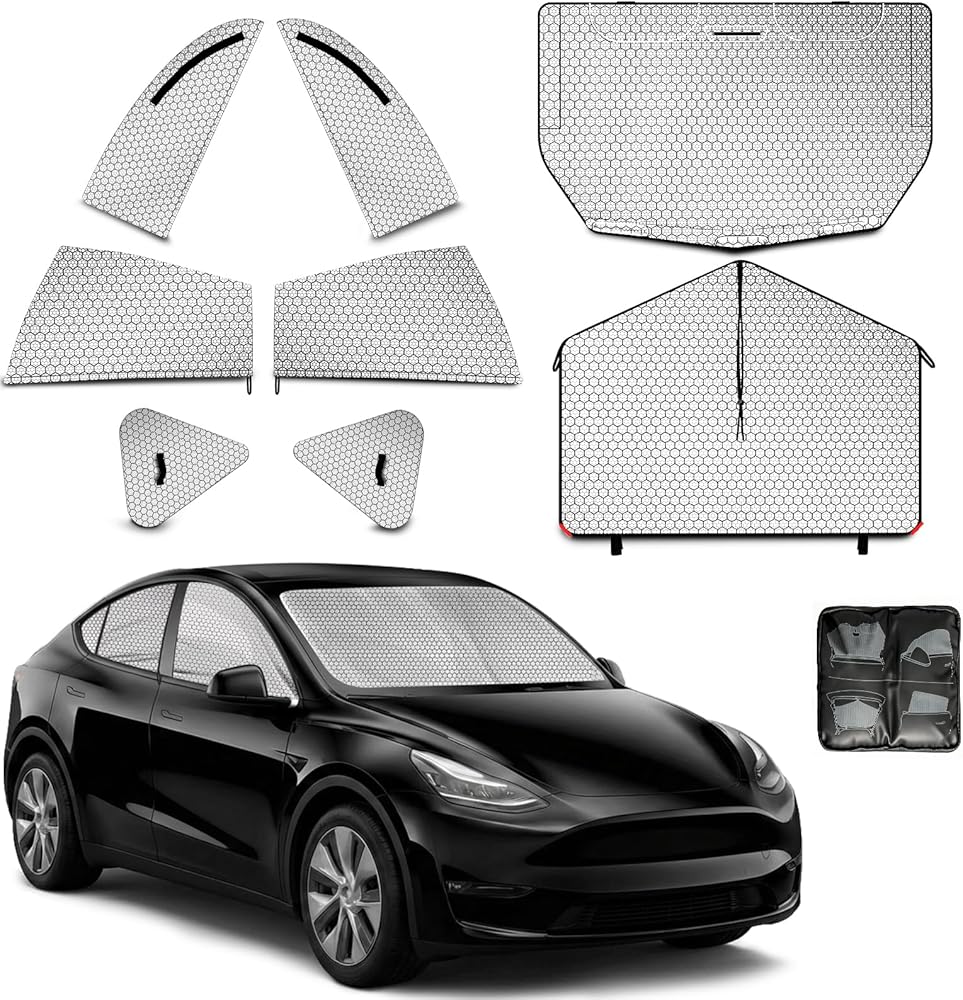 Ultimate Thermal Control & Privacy for Your Tesla Model Y (2020-2024) Elevate your driving and camping experience with our premium 8-piece Full Set Window Sun Shades. Engineered specifically for the unique frameless door design of the Tesla Model Y (2020 2021 2022 2023 2024), this set offers a seamless blend of high-tech heat insulation and absolute privacy. (Please Note: This set is NOT compatible with the 2025+ Model Y "Juniper" refresh).