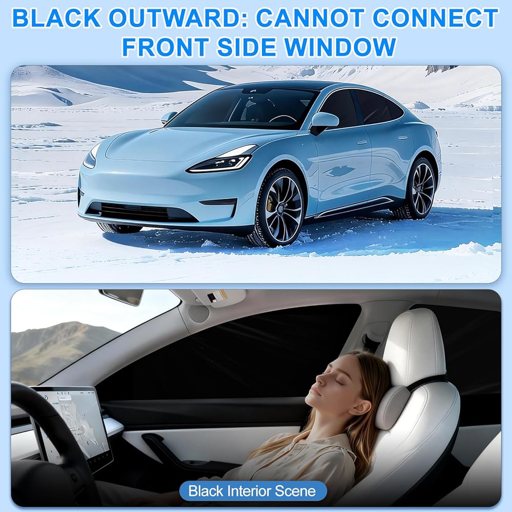 [Custom-Fit Tesla Model Y Window Shade 2020-2024] Specifically engineered for the frameless doors of the Tesla Model Y 2020 2021 2022 2023 2024. This window shade set features a unique slip-on dual-layer structure that fits over the door like a sleeve, ensuring a 1:1 precise fit for your vehicle's geometry. (Note: Not compatible with the Juniper refresh)