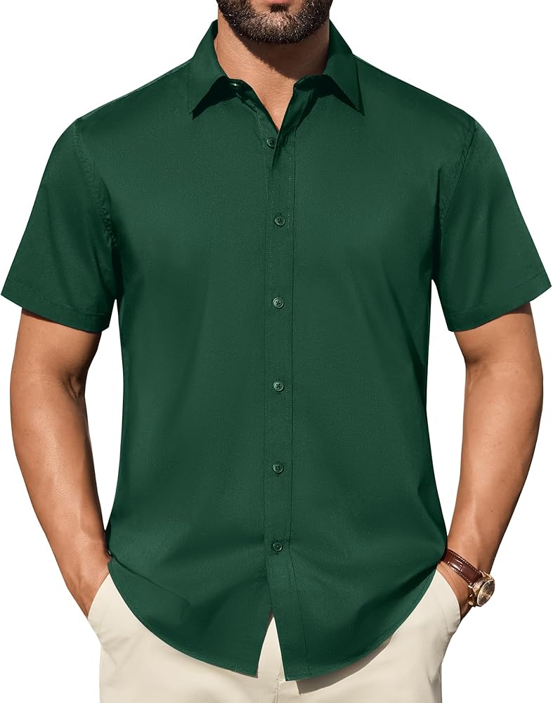 Occasion:This white mens short sleeve button down shirts can suitable for formal, casual, outdoor, indoor, and commuting scenarios. Effortlessly transitions from weddings, offices, and parties to holidays, dates, homewear, and golf outings