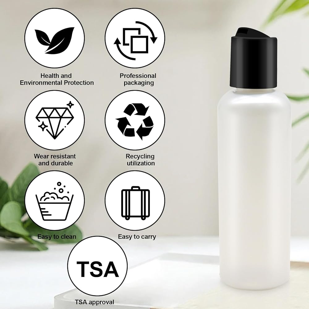Material: The white travel bottles for toiletries bottle is composed of a PET body and a PP cap, which is wear-resistant, reusable, and can be used with confidence. Reminder: Bottles cannot be cleaned with hot water or disinfected at high temperatures !
