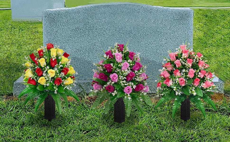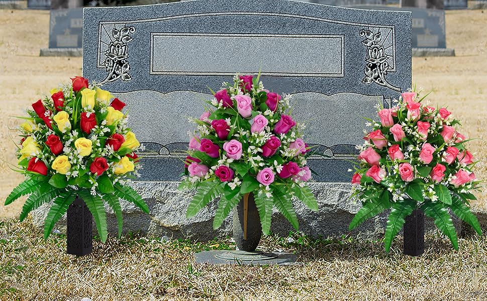 High-Quality Material: These cemetery flowers are made to withstand sun, rain, and seasons. Featuring UV and weather-resistant materials that prevent fading and color bleed, ensuring dignified presentation through all conditions