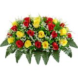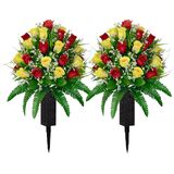 Everlasting Beauty: Honor your loved one with lasting grace. Our 24 per red and yellow rose cemetery arrangement is designed to remain vibrant and fresh-looking for months, offering a timeless symbol of remembrance without any upkeep.