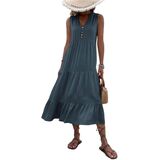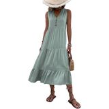 Vacation Outfit : For a laid - back beach day, pair this sleeveless v neck dress with strappy sandals and a woven beach tote. When exploring beachside towns, team it with a pair of flat sandals and a cross - body bag. The dress's flowing nature makes it perfect for strolling along cobblestone streets, popping into local boutiques, and sipping on iced coffee at a sidewalk café