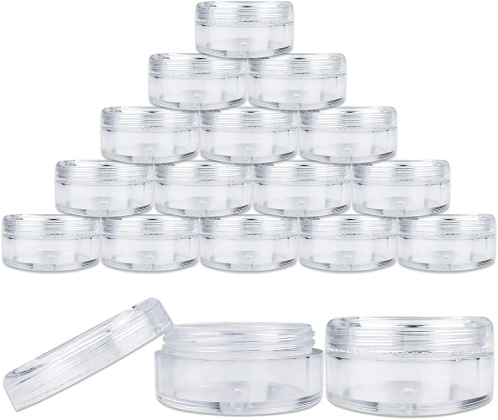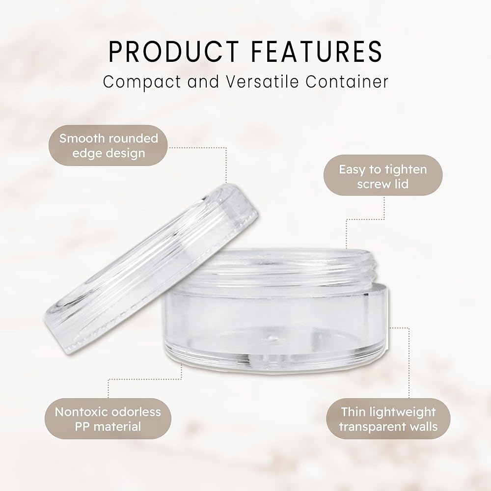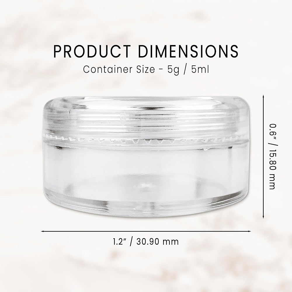 [USES]: Perfectly use for cosmetic product, facial cream, mud mask, eye cream,blusher and other body skin care product and makeup items. suitable for personal and professional use. Thicken bottom of each container effectively to avoid break and have good stability, transparent jar wall convenient for you identify items inside. You can easily clean these durable container with warm soapy water or wipe down. These are great because it can be reused as many time as desirable.