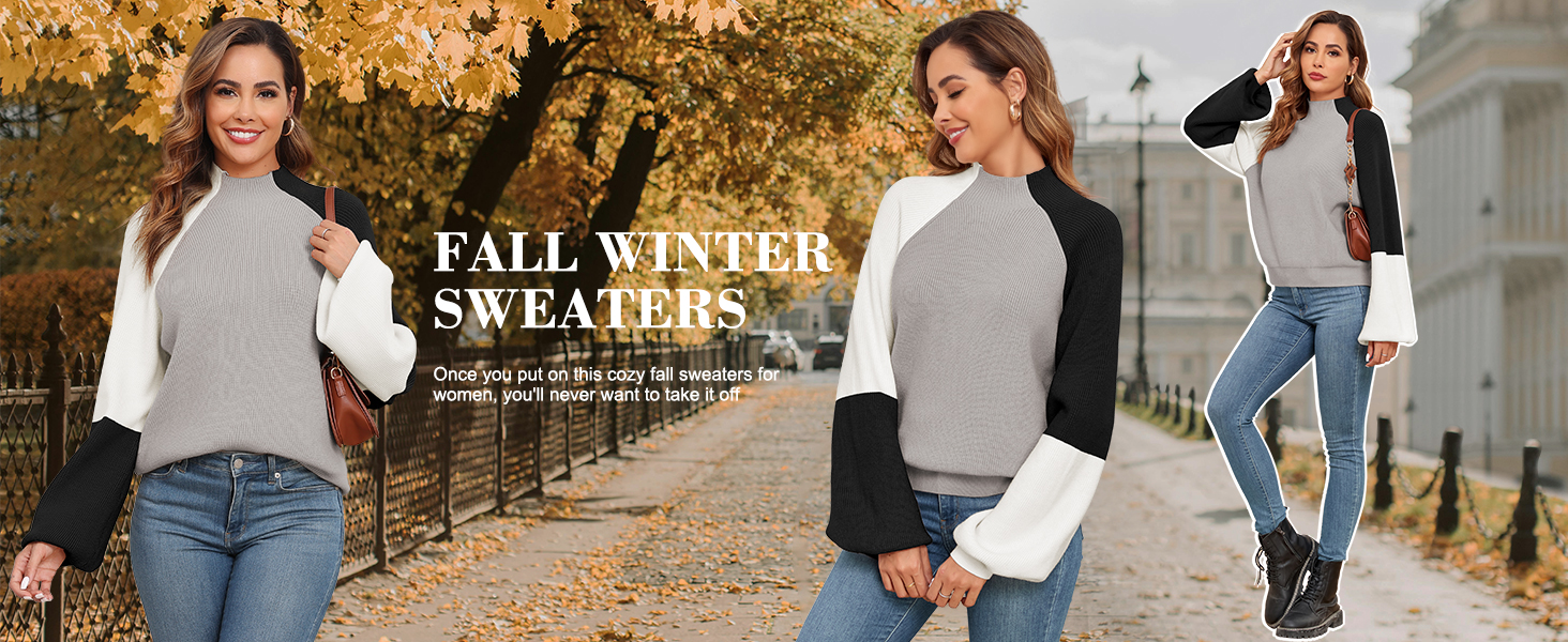 Take your mock neck color block knitted fall sweaters game to a whole new level this season! This fall fashion sweaters for women 2025 trendy is suitable for both slim and curvy ladies. The unique colorbock design adds a touch of sophistication, while the super-soft fabric ensure comfort all day long. With the voluminous lantern sleeve, blends classic tones with bold accents, making it easy to pair with a variety of fall outfits, this knit pullover sweater offers both style and warmth, making it a standout piece in any cold-weather wardrobe. Once you put on this cozy fall sweaters for women, you'll never want to take it off.
