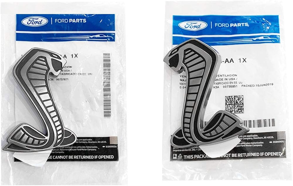 These are the original factory emblems that come on the 2020-2021 Shelby GT500. Both emblems are contoured to fit to the slightly curved fender of the car. Emblems are silver with a matte black fill. Alignment pins can be shaved off so that emblems can be installed anywhere.