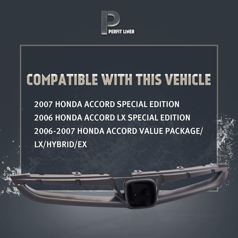 Perfit Liner New Front Gray Grille Grill with Emblem Provision Compatible With 2006 2007 HONDA Accord Sedan Value Special Edition Fits HO1200179 71121SDAA10ZA