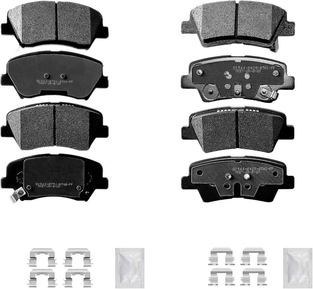 Package includes: A total set of front and rear ceramic brake pads with hardware kit, save installation time and cost.