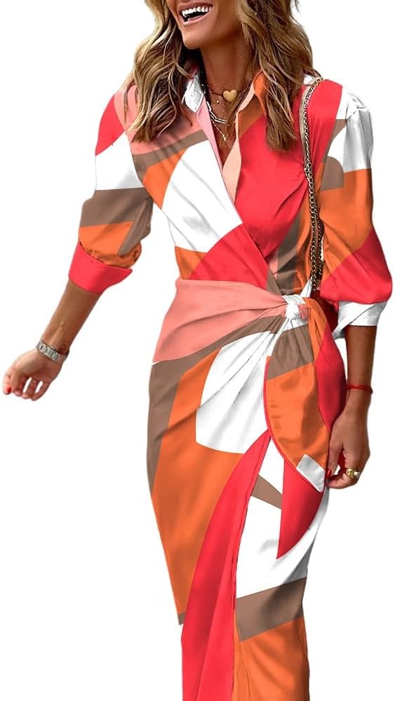 Wrap Tie Waist for Flattering Fit – This tie waist midi dress cinches the waist to create a streamlined silhouette, ideal for fall shirt dresses for women casual or dressy occasions