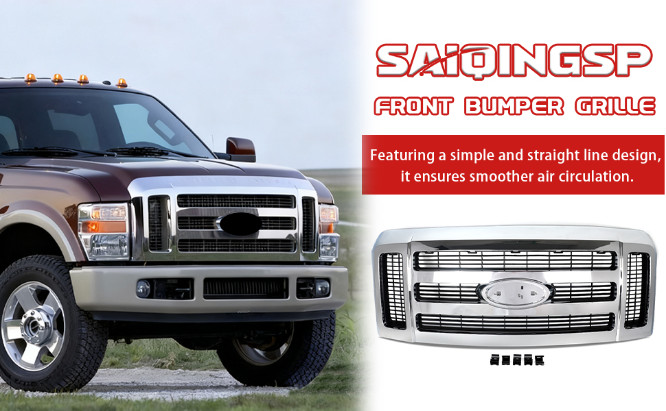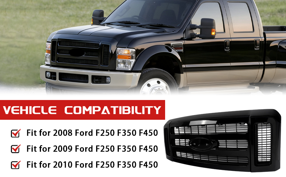 【Compatibility】The upper grille assembly compatible with 2008 2009 2010 Ford F250 F350 Super Duty SLT model.OE replacement number:7C3Z-8200-BA.Please confirm if it matches your vehicle model before making a purchase