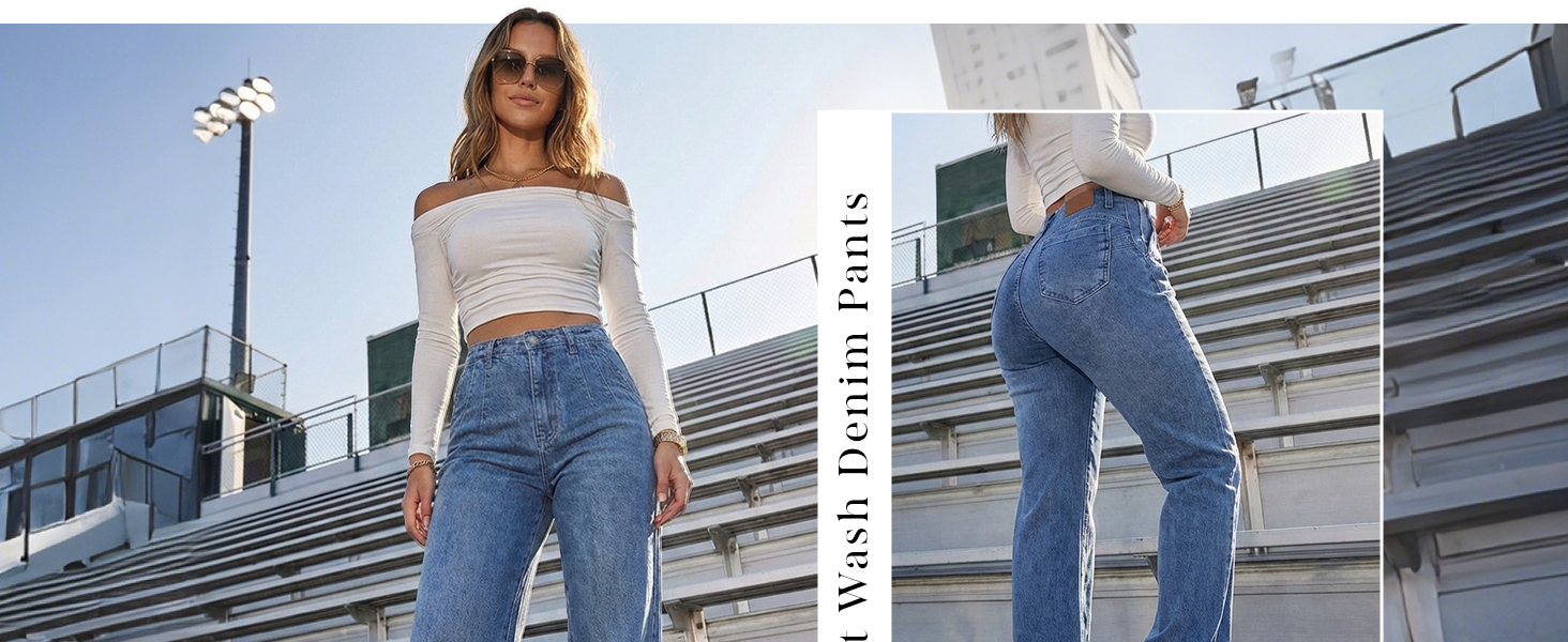 Wide Leg Style : The wide leg design from thigh to ankle creates a stylish and flowing silhouette that pairs well with various tops such as crop tops tank tops or sweaters.