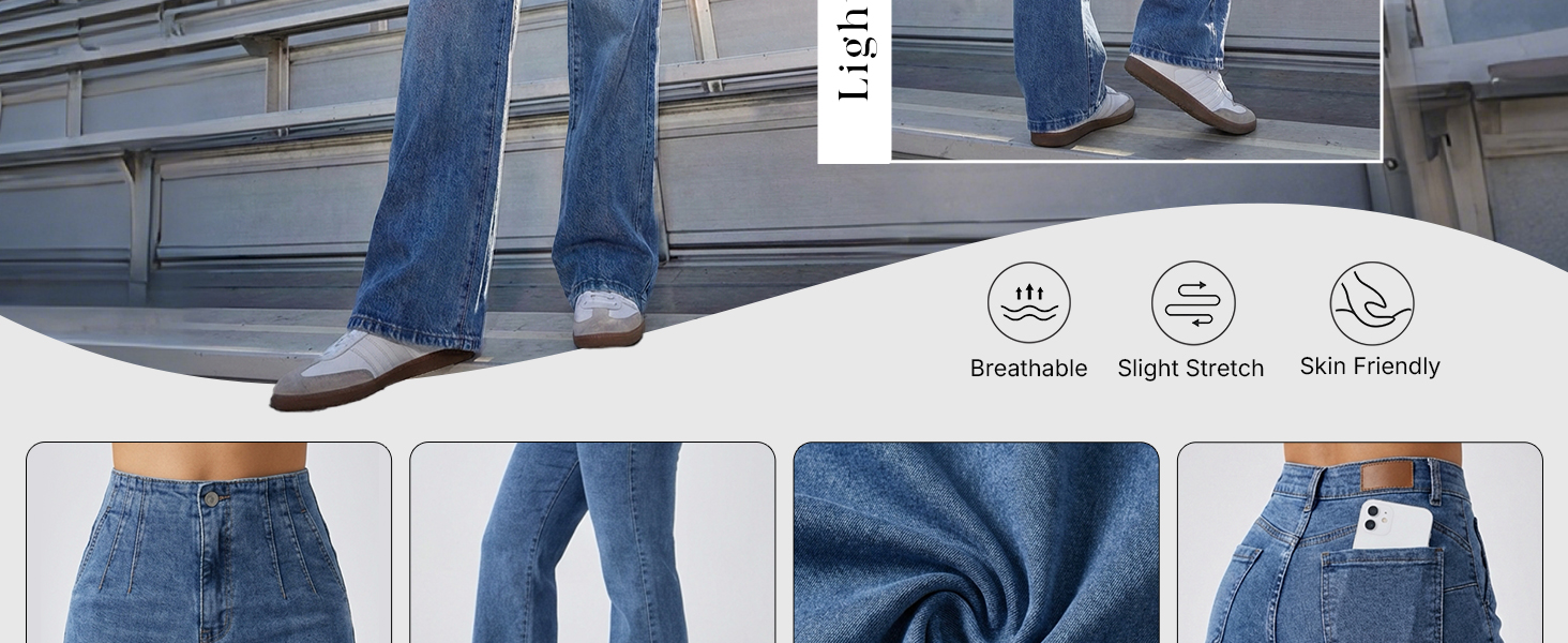High Waisted Design : This jeans features a high waisted cut that fits closely to the waistline helping to shape the waist and abdomen area while offering a comfortable wearing experience.