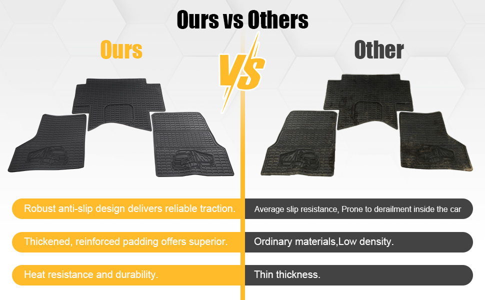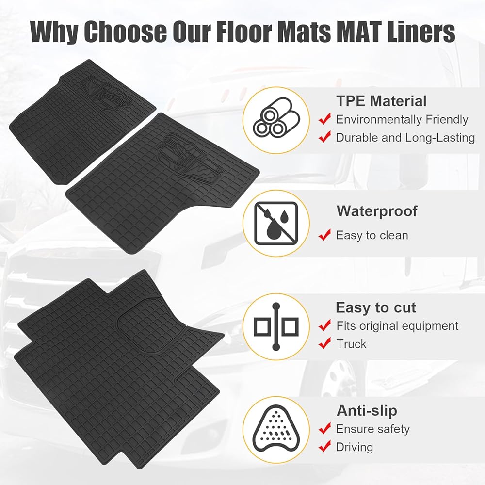 Functionality: The square patterned surface can prevent soil, debris, liquid spills and stains, keeping the driver's cabin clean. The anti-slip structure on the back can hold onto the original vehicle floor, preventing the mat from shifting and ensuring driving safety