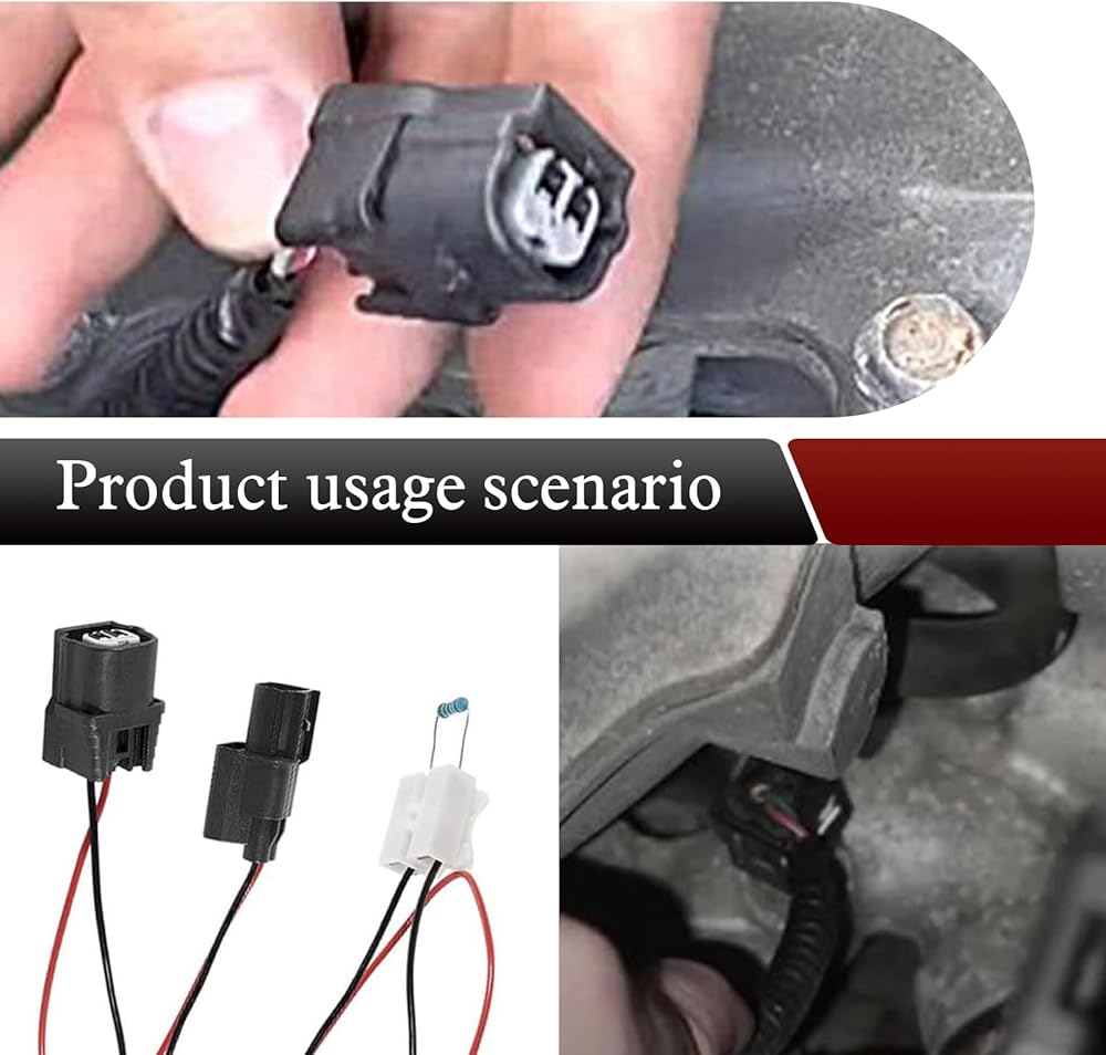 Packing Contents: The package comprises 1 VCM control module wiring harness plug, accompanied by 4 resistors of varying ohmic values (68 ohms, 82 ohms, 100 ohms, 120 ohms). The connector features 4 buttons for seamless integration of resistors and wiring harness.