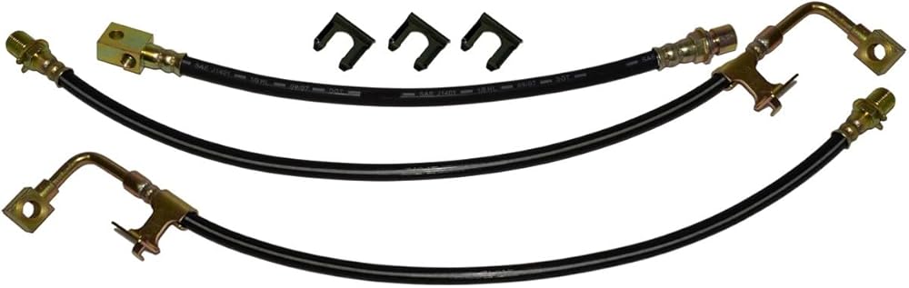 1973- , , , 2wd Rubber Brake Hose Kit FrontDisc Brake & RearHoses with correct Zinc Ends. 3pc Raybestos H760, H759 Front & H765 Rear, Comes with all hardware:3 Clips Clp111 Front Disc Rear Drum Brakes These are the correct length, with the correct size ends with the correct stop ring the frame ends. These hoses also feature bright dot lettering just like the originals. These hoses run from the frame to the wheel cylinder or caliper, to transfer fluid from the hardline to the hose. They up and down with suspension travel. Inline Tube stocks extensive selection of vehicle specific brake hoses in both OE rubber & our exclusive Power Braid stainless materials. All hoses are made to factory specifications & have the correct male, female, or banjo fittings. Includes: (1)Rubber hose w/ a 7/16”-24female & a3/8”-24tee. (2)Rubber hoses each w/ a 3/8”-24 male & a 7/16” banjo. (3) Brakehose clips.