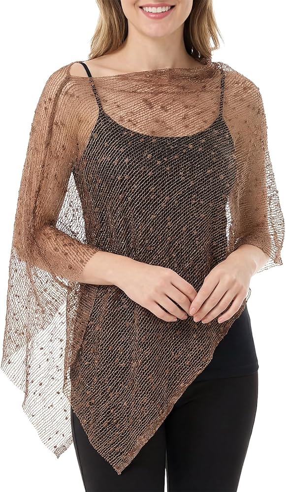 Elastic Design: you will receive one Brown Women's Sheer Blouse; This Women's Sheer Poncho features stretch for a comfortable fit and easy movement; It's lightweight and soft, and folds up small for easy transport