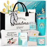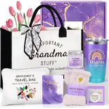 8PCS GRANDMA GIFT IDEAS: This beautifully curated grandma gifts includes: 1 x 20 Oz Insulated Tumbler (with Straw & Brush), 1 x Reusable Grocery Tote Bag, 1 x Cosmetic Pouch Bag, 1 x Lavender Scented Candle, 1 x Fun Keychain, 1 x Soft Fuzzy Socks, 1 x Hair Scarf (also doubles as a ribbon), and 1 x Double-Sided Greeting Card. This thoughtful set is a daily reminder of your grandma's love and strength, designed to pamper her and make her feel special every day.