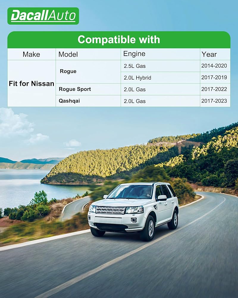 Fit for Nissan Models: Dacall Cabin & Engine Air Filter Set fits for Rogue 2.5L Gas (2014-2020), Rogue 2.0L Hybrid (2017-2019), Rogue Sport 2.0L Gas (2017-2022), Qashqai 2.0L Gas (2017-2023). Note: Please check Amazon's ‘Confirmed Fit' tool before purchase to ensure proper fitment.
