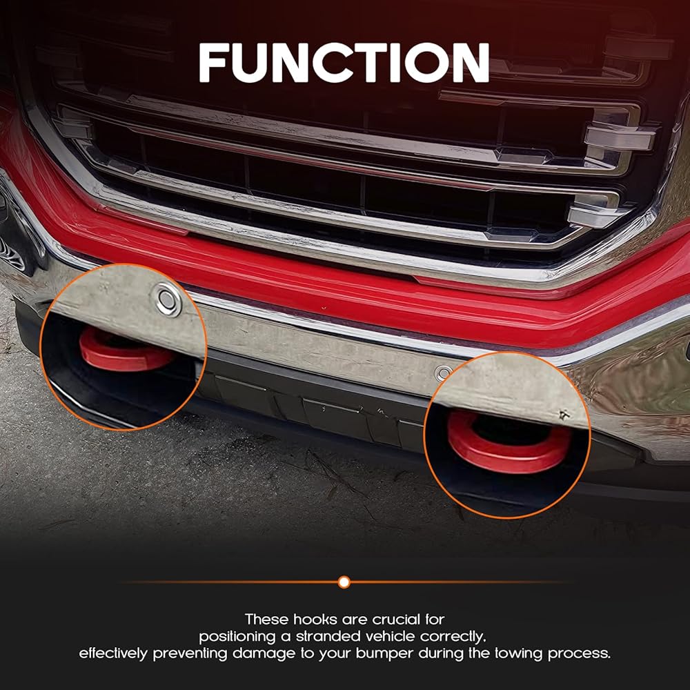 【FUNCTION】Ensure safe vehicle recovery and assisted towing. These hooks are crucial for positioning a stranded vehicle correctly, effectively preventing damage to your bumper during the towing process.