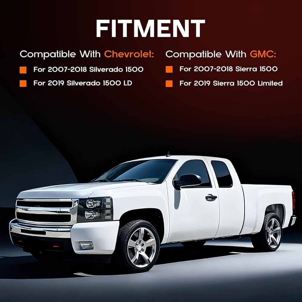 【FITMENT】Engineered for a perfect fit with: for Chevrolet 2007-2018 Silverado 1500,2019 Silverado 1500 LD,for GMC: 2007-2018 Sierra 1500,2019 Sierra 1500 Limited