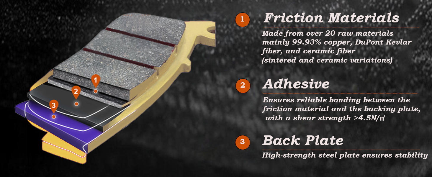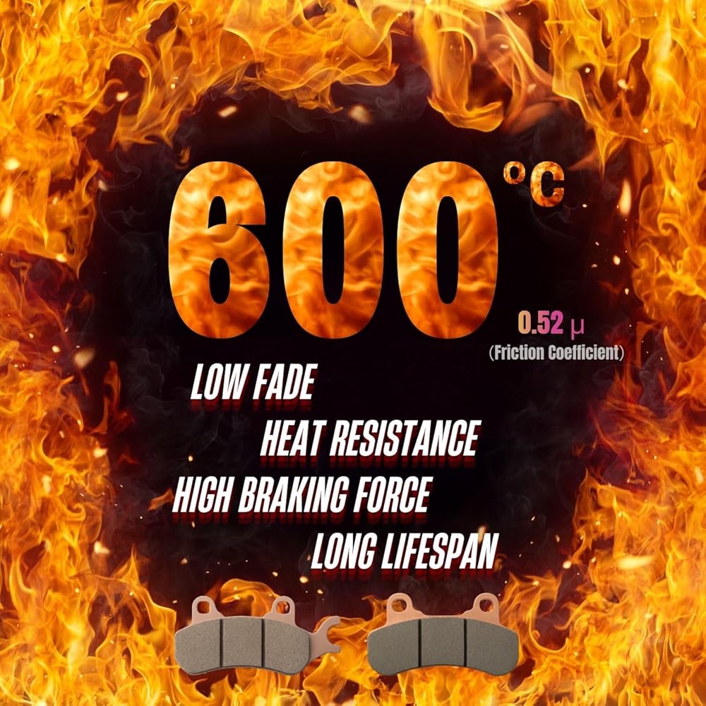 Specs & Key Features - Sintered, resistant to high temperatures up to 600°C, with a friction coefficient of 0.52(almost reaching HH grade standards). They feature LOW FADE, HEAT RESISTANCE, HIGH BRAKING FORCE