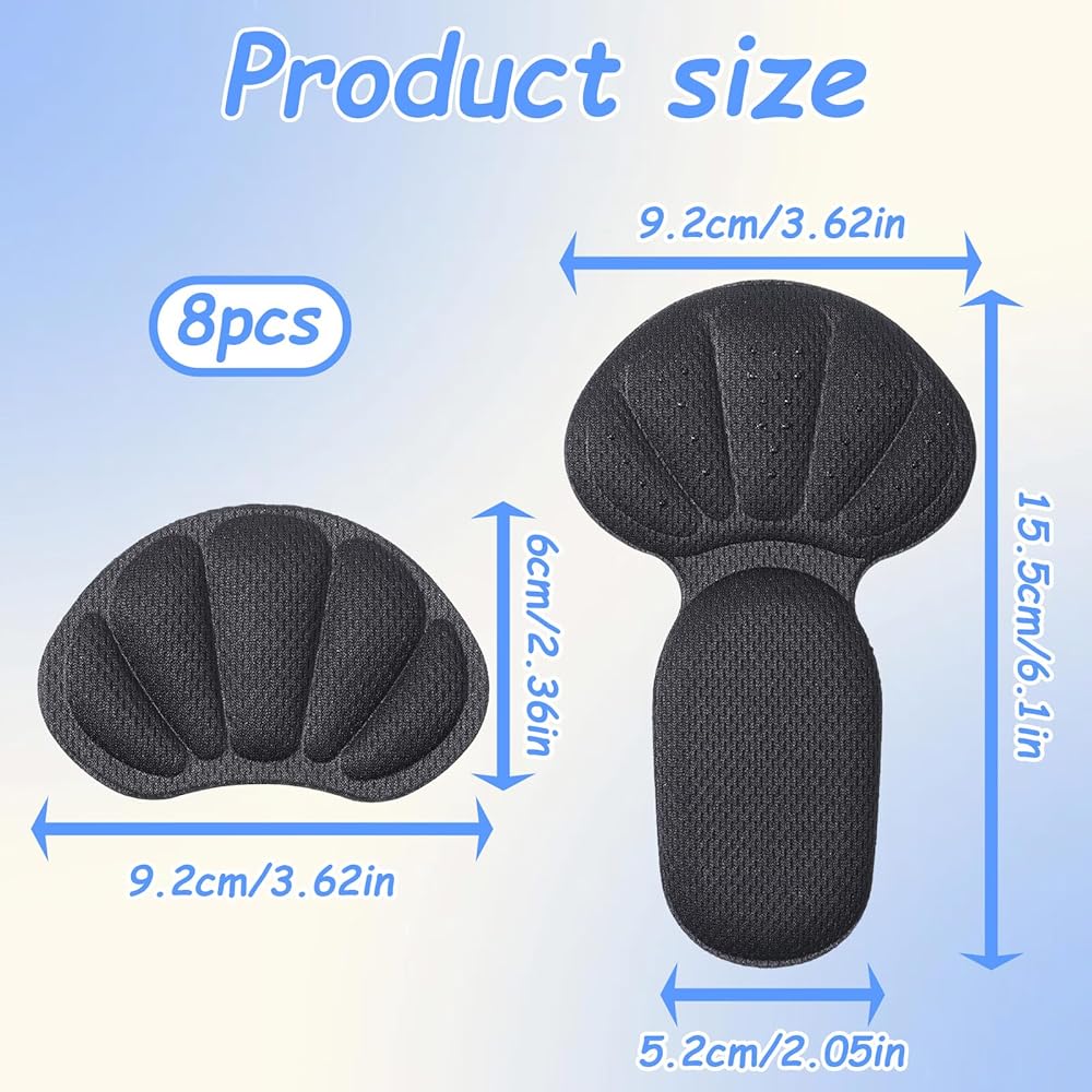 Set Includes: You will receive a total of 8 pieces of shoe heel inserts, providing excellent value. The package includes two different sizes to accommodate various shoe types and foot shapes properly. This quantity is sufficient for multiple pairs of shoes or to share with family and friends