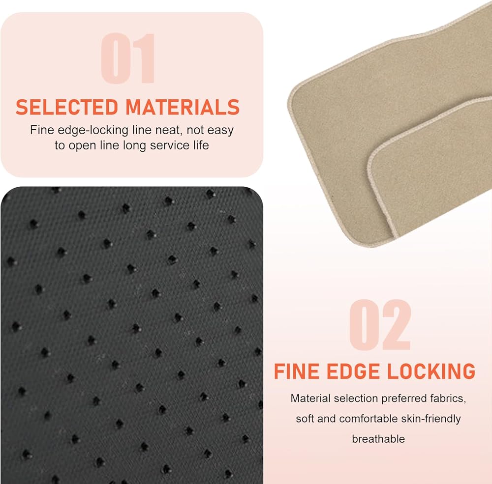 Anti-slip Design: The car floor mats feature outstanding anti-slip capabilities. The textured surface increases friction between feet and mats, preventing shoe soles from sliding. The mat backing prevents shifting during acceleration, braking, or turning, enhancing driving safety.