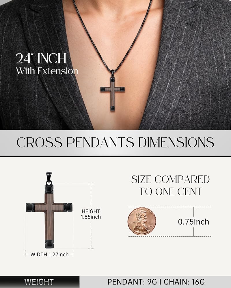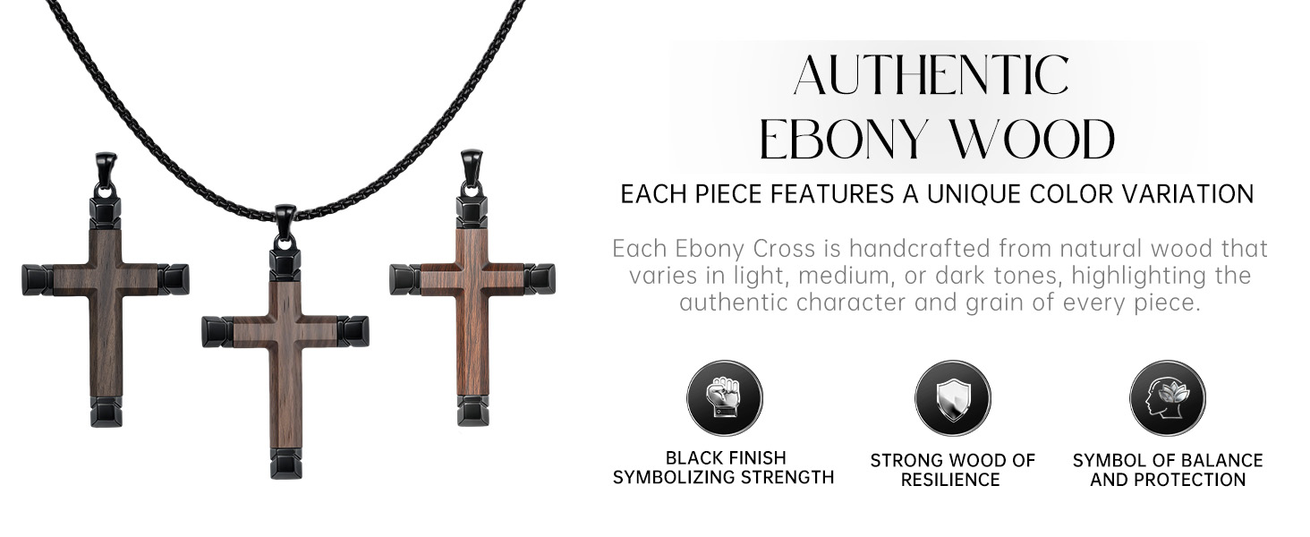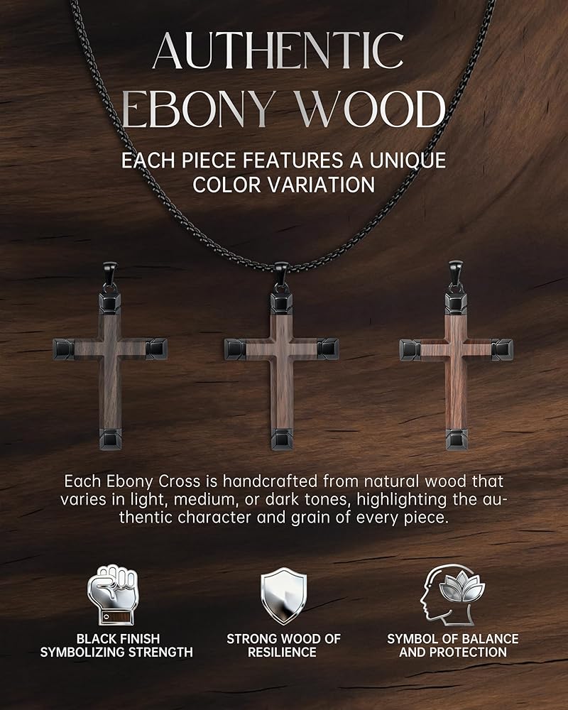 🎁【Please Note】Since this cross pendant is made of 100% natural ebony wood each piece of wood is unique, so the color and grain of each wood pendant may vary. Thank you for your understanding.