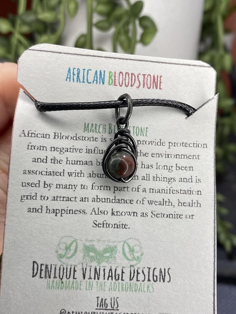 African Bloodstone 6mm Herringbone Pendant in Steel, Copper, Bronze, Black Iron, Titanium, Sterling Silver, 14K Gold, Rose Gold, or Black Niobium Wire (Handmade) March Birthstone Aries Zodiac