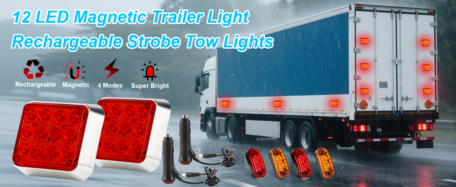 The LIGBT magnetic trailer lights features a premium electroplated silver ABS housing paired with a high-quality rubber-coated magnetic base and durable PC lens offers dustproof, shockproof, and waterproof protection for reliable performance in any weather or road condition