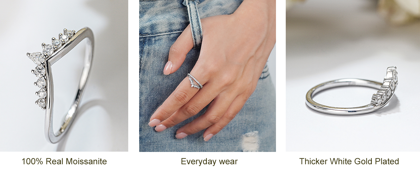 【Top Grade Moissanite – Brighter, Stronger, Everlasting】-Crafted with 100% REAL MOISSANITE, these moissanite rings for women shine with more fire and brilliance than traditional diamonds. It matches diamond in hardness, yet is more affordable and resistant to tarnish or discoloration. The band is made of 925 sterling silver and plated with 18K white gold—hypoallergenic, lead-free, and nickel-free