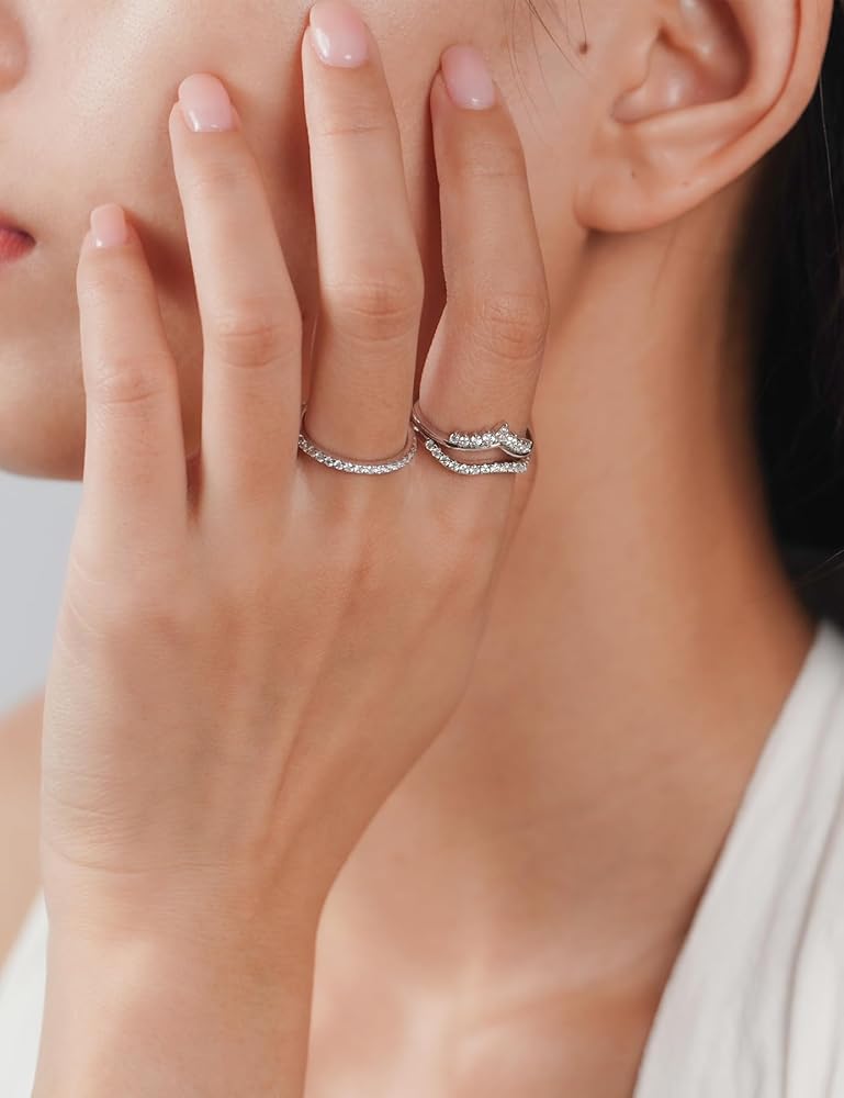 【Timeless Stackable Eternity Design】-Featuring a sparkling moissanite in a classic eternity setting, these womens wedding bands are perfect for stacking with your engagement band, gifting to a loved one, or wearing as a minimalist statement piece