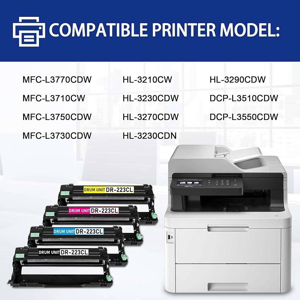 4 Pack DR223CL DR-223CL Drum Unit Replacement for Brother MFC-L3770CDW L3710CW L3750CDW L3730CDW HL-3210CW 3230CDW 3270CDW 3230CDN DCP-L3510CDW L3550CDW Printer(1BK+1C+1M+1Y,Toner is not Included).