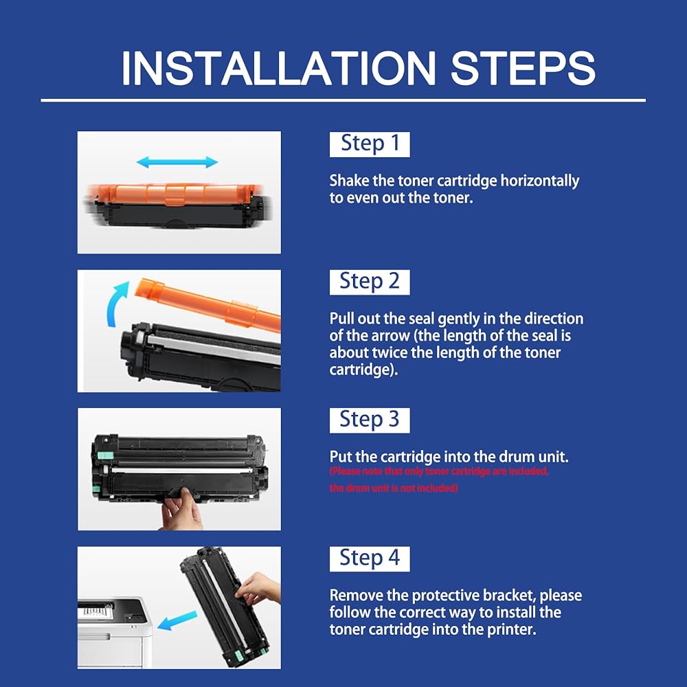 Package contents: 1xBlack,1xCyan,1xMagenta,1xYellow Drum Unit(Drum unit only,Toner Cartridge is not included).