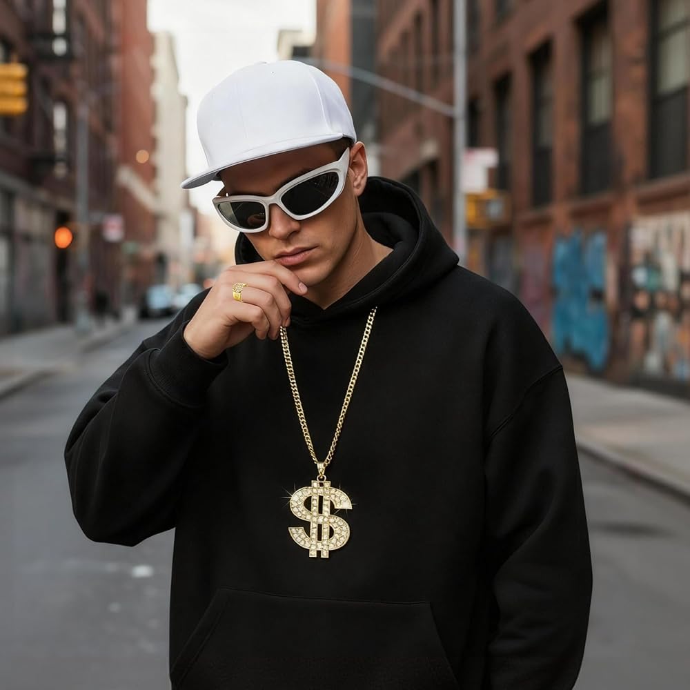 • 【Classic Replica】 The Hip Hop Costume Set authentically recreates iconic hip-hop styles from the 80s, 90s, and 2000s. The gleaming gold chain paired with a minimalist white cap and sunglasses effortlessly makes you the visual centerpiece at any party.