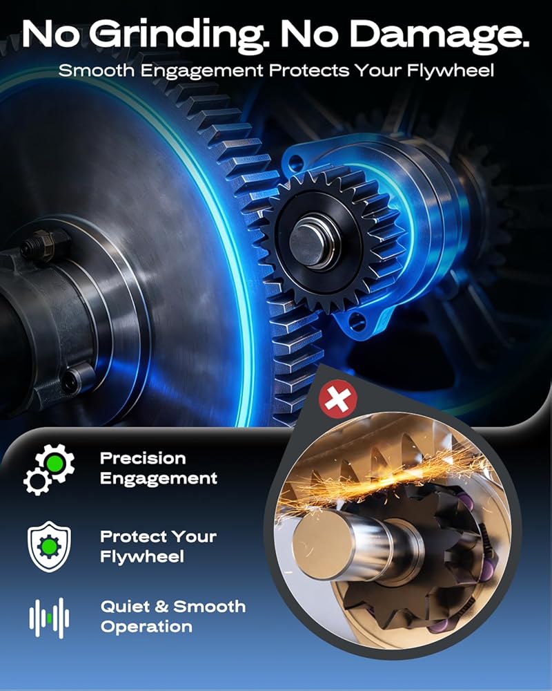 【Fast, Smooth Engagement - No Grinding Noise】Precision-cut drive gear and balanced armature ensure quick gear engagement and smooth rotation, reducing startup shock. Starts clean — without harsh grinding or clunking.