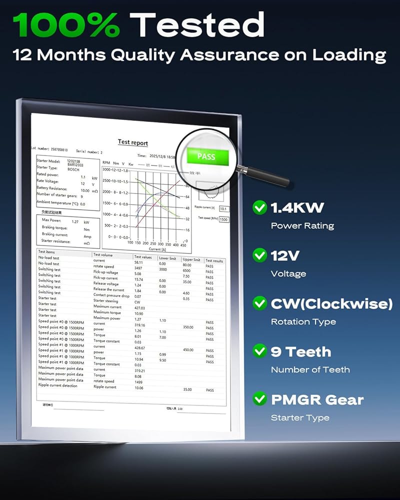 【OEM-Grade Starting Power - No Slow Cranking】Built with OEM-grade torque output to deliver strong, immediate starts, even on high-mileage engines. No hesitation. No weak cranking.