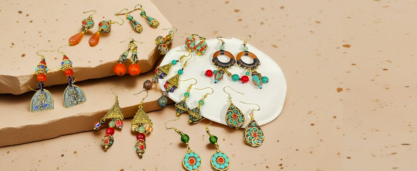 [Design & Aesthetics]: The gold plating gleams, accentuating the natural colored crystal stones that are artistically set. Each piece seems to tell a story of its own, reflecting the rich cultural heritage of Tibetan artistry. The combination of gold and vibrant crystal colors creates a striking visual appeal that truly elevates any outfit !