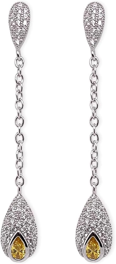 Introducing our exquisite Fancy Yellow Pear Cut Dainty Dangle Style Earrings White Gold Rhodium Finish in a dazzling White Gold Rhodium Finish with stunning CZ accents. These earrings are the epitome of elegance and luxury, designed to make you shine like a star on any red-carpet event. Key Features: 1. Chandelier Glamour: These earrings boast a magnificent chandelier-style design that gracefully cascades from your ears, creating a dramatic, eye-catching effect. Perfect for those special occasions where you want to make a grand entrance. 2. Dainty yet Bold:While these earrings are dainty in appearance, they make a bold statement. The intricate design and high-quality CZ stones catch the light with every movement, ensuring you stand out in any crowd. 3. White Gold Rhodium Finish: The brilliant White Gold Rhodium finish not only enhances the earrings' overall beauty but also ensures they stay tarnish-free and maintain their lustrous shine for years to come. 4. CZ Brilliance: The cubic zirconia (CZ) stones used in these earrings are of the highest quality, carefully crafted to mimic the brilliance of genuine diamonds. They sparkle with unparalleled radiance, adding a touch of luxury to your ensemble. 5. Comfortable Wear:Despite their glamorous appearance, these earrings are designed for comfortable, all-day wear. The lightweight construction and secure closure make them a joy to wear throughout your event. 6. Versatile Elegance:These chandelier earrings are incredibly versatile. They pair beautifully with evening gowns, cocktail dresses, or even elevate your favorite jeans and a blouse for a more casual yet chic look. 7. Red-Carpet Ready: Whether you're attending a prestigious awards show, a glamorous gala, or an upscale soirée, these Fancy Yellow Pear Cut Dainty Dangle Style Earrings are your go-to accessory for stealing the spotlight. Elevate your style and make a statement that will leave a lasting impression with these exquisite earrings.