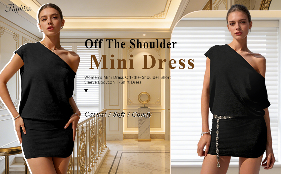 Soft Stretch Fabric: Made from lightweight, breathable and skin-friendly fabric with comfortable stretch, this off the shoulder mini dress offers a smooth feel, easy movement and all-day comfort as a short dress.