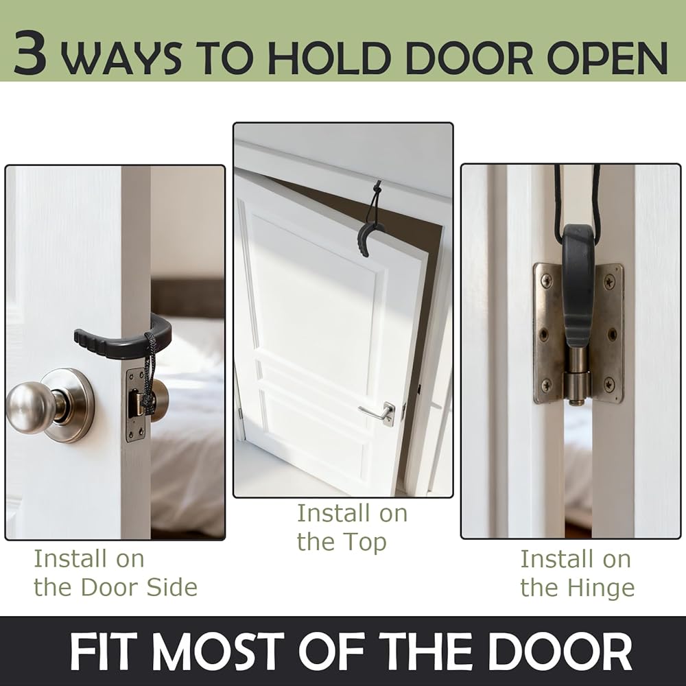 EASY TO USE ANYWHERE: Can be placed at the top, edge, or hinge of most doors. Nylon cord prevents slipping and allows fast retrieval after use